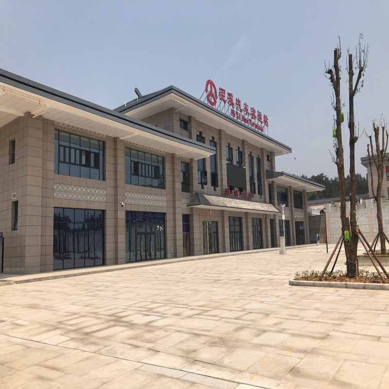 该车站按二级站建设标准设计,总用地面积2万平方米,建筑面积4415平方米,包括站房、安检用房、进出站管理用房、发车位雨棚等,规划日均输送旅客量3000人。